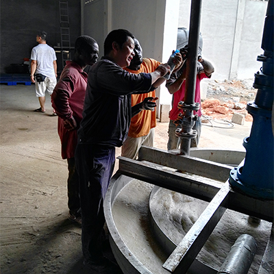 Stirring salt washing machine, salt slurry enters from the upper part into the washing equipment, during the stirring of the blade, the washing liquid there will be strong collision, scouring, mixing, and forming a reverse washing to the salt granule., so that the dirt on the salt surface can be separated with the salt. Salt slurry is drawn out from the pump port on bottom, washing liquid is overflow from the upper side.
